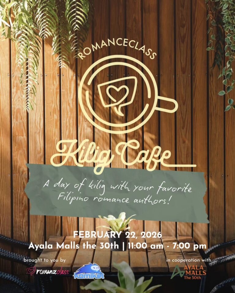 If you’re in the Philippines and you want the print copy, join us for a day of kilig at the #RomanceClass Kilig Cafe on Sunday, February 22, 11:00 a.m. to 7:00 p.m. at the Ayala the 30th Activity Center. 🙂 Admission is free! Print copies of all my books will be available until supplies last! And make sure to stay for the live reading. 😉